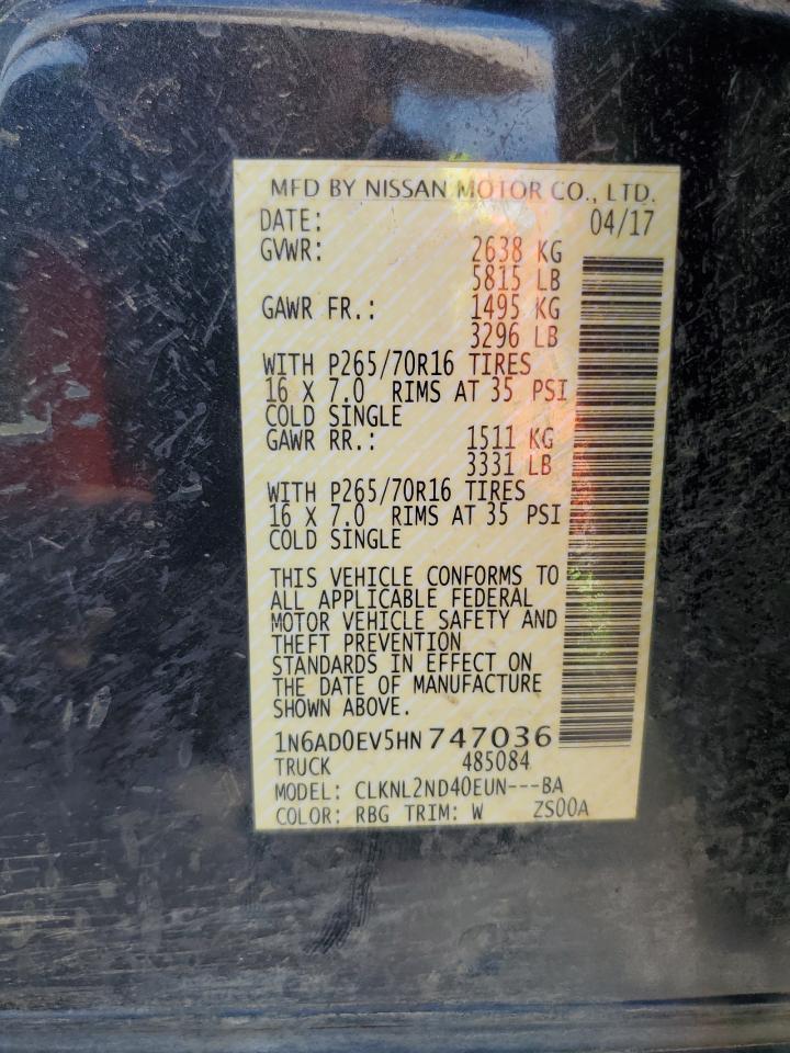 NISSAN FRONTIER 4.0 2017 р.в., 4x4 з заднім приводом (1N6AD0EV5HN747036) з США