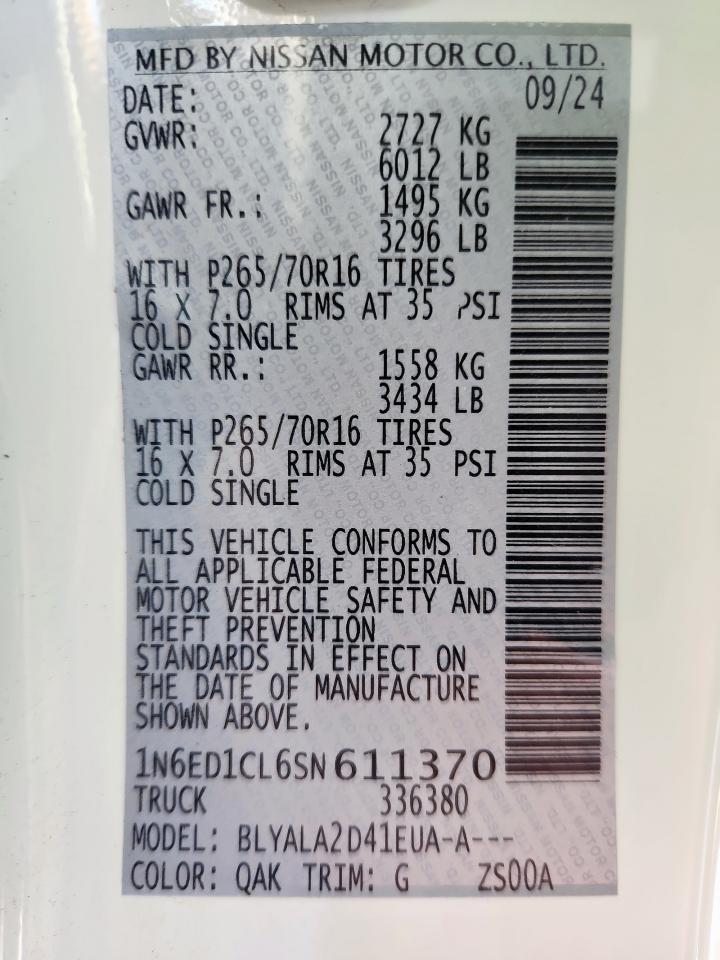 NISSAN FRONTIER 3.8 2025 р.в., Задній привід (1N6ED1CL6SN611370) з США