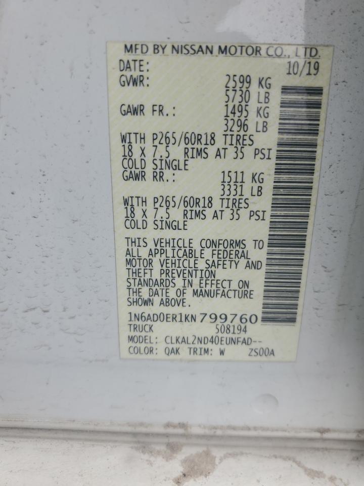 NISSAN FRONTIER 4.0 2019 р.в., Задній привід (1N6AD0ER1KN799760) з США