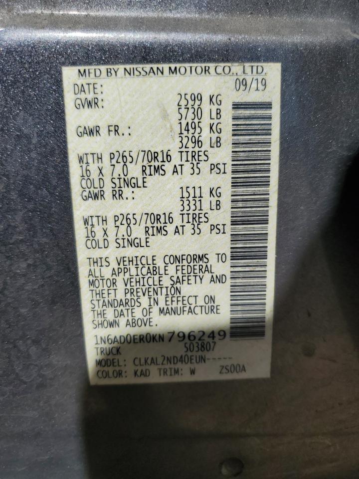 NISSAN FRONTIER 4.0 2019 р.в., Задній привід (1N6AD0ER0KN796249) з США
