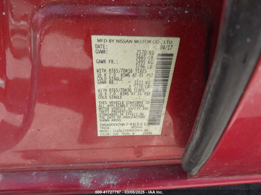 NISSAN FRONTIER 4.0 2017 р.в., Повний привід (1N6AD0EV2HN746541) з США