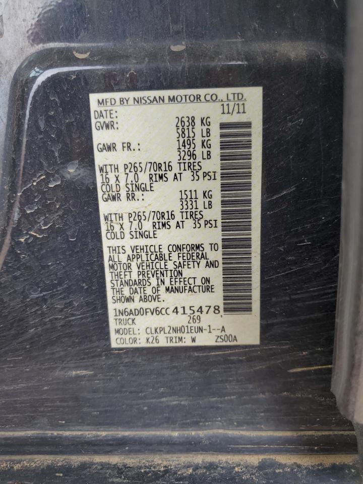 NISSAN FRONTIER 4.0 2012 р.в., 4x4 з заднім приводом (1N6AD0FV6CC415478) з США