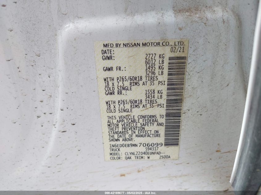 NISSAN FRONTIER 3.8 2021 р.в., Повний привід (1N6ED0EB9MN706099) з США