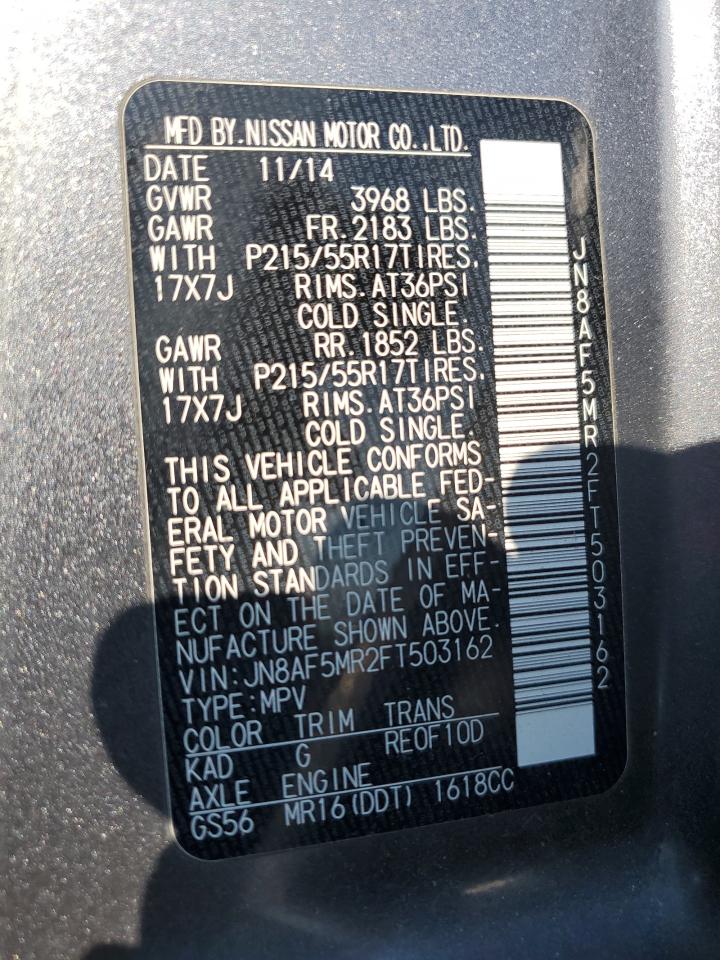 NISSAN JUKE 1.6 2015 р.в., (JN8AF5MR2FT503162) з США