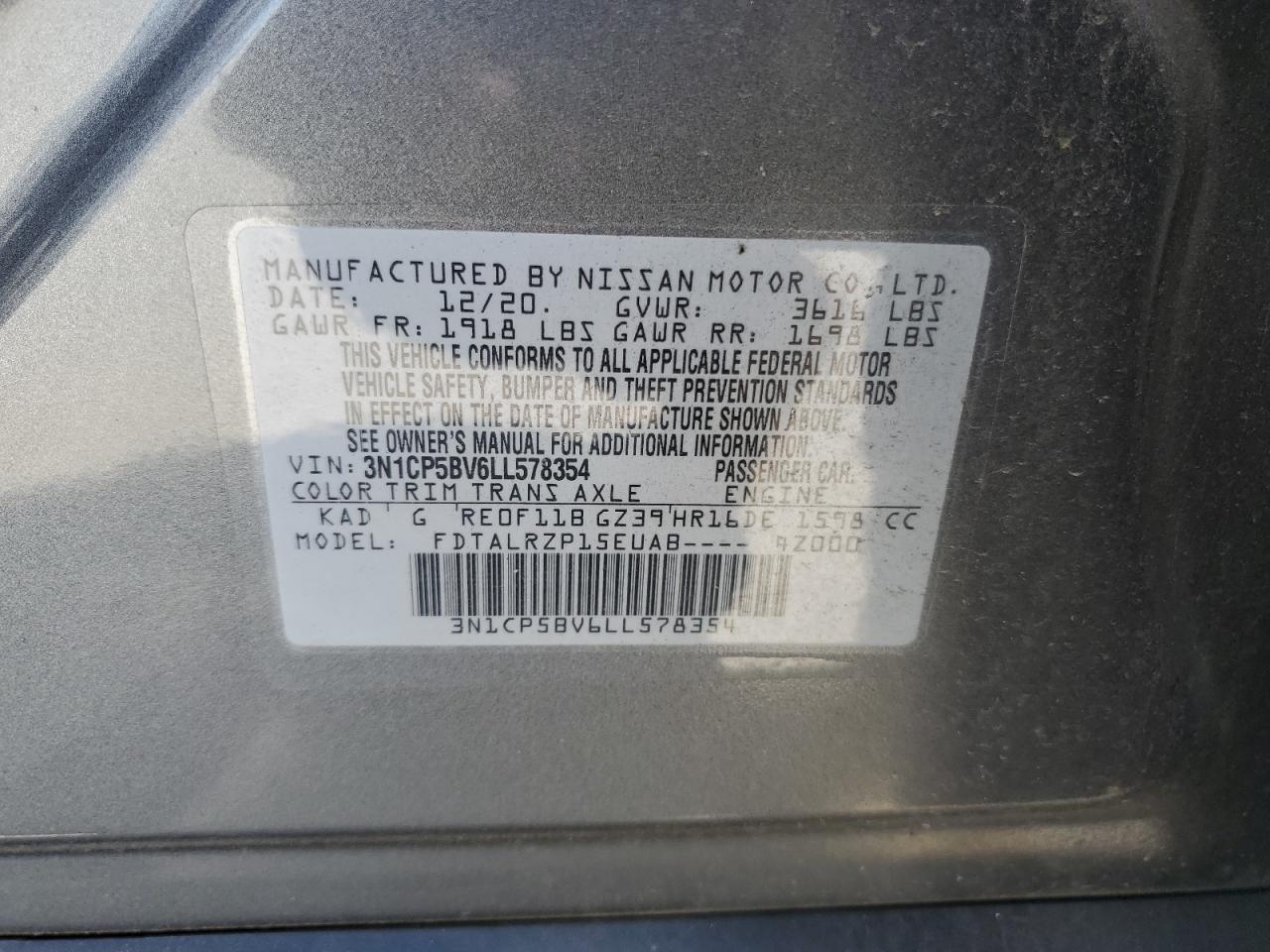 Колір СірийЦиліндри 4VIN 3N1CP5BV6LL578354Стан Заводиться та їде (перевірено)Ушкодження Передня або задняДата аукціону 2025-11-03