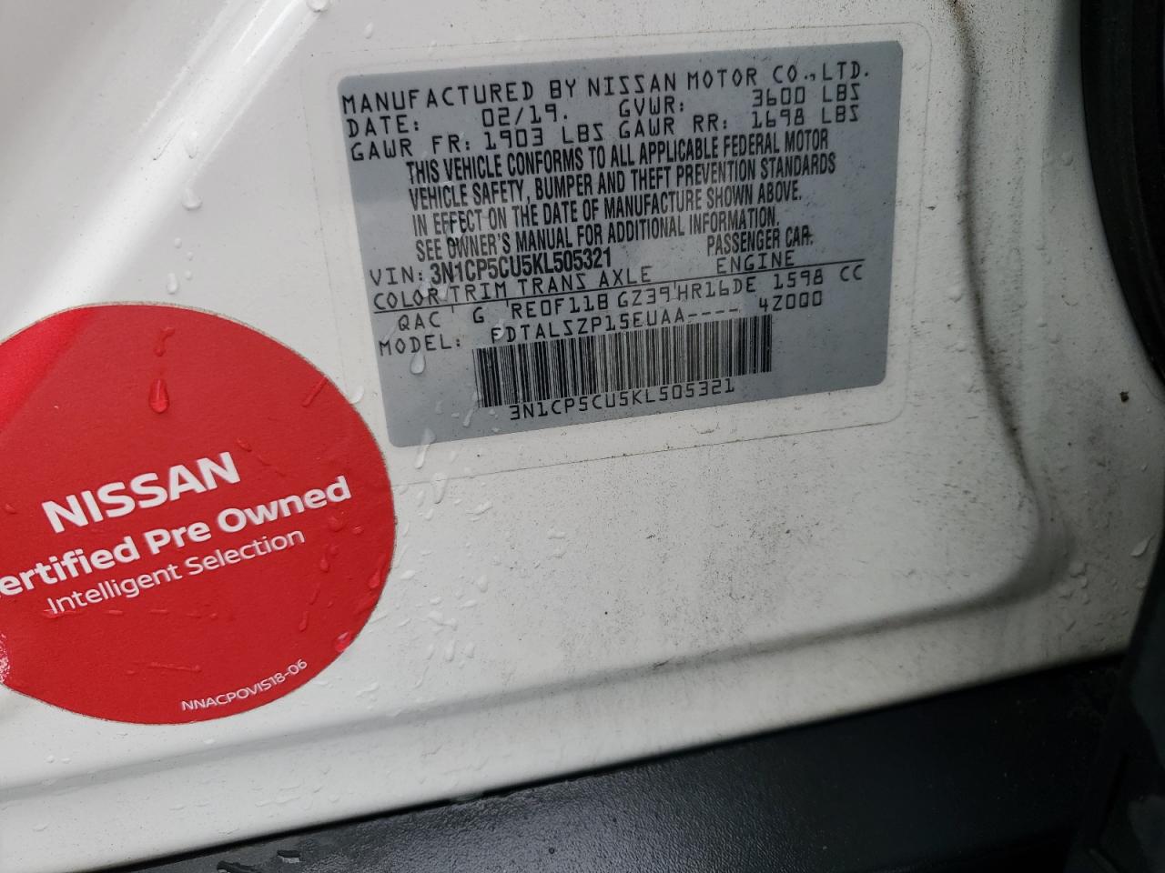 Колір БілийЦиліндри 4VIN 3N1CP5CU5KL505321Стан Заводиться та їде (перевірено)Ушкодження ЗадняДата аукціону 2025-11-05
