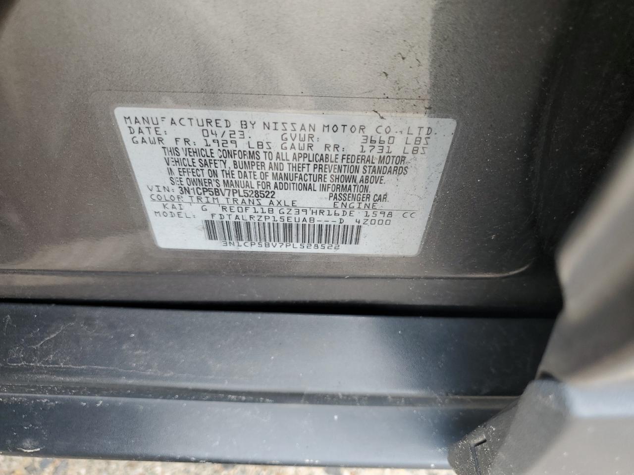 Колір СірийЦиліндри 4VIN 3N1CP5BV7PL528522Стан Заводиться та їде (перевірено)Ушкодження З боківДата аукціону 2025-11-04