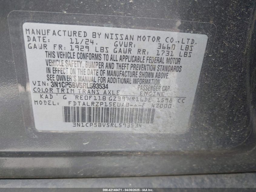 NISSAN KICKS 1.6 2024 р.в., Передній привід (3N1CP5BV5RL593534) з США