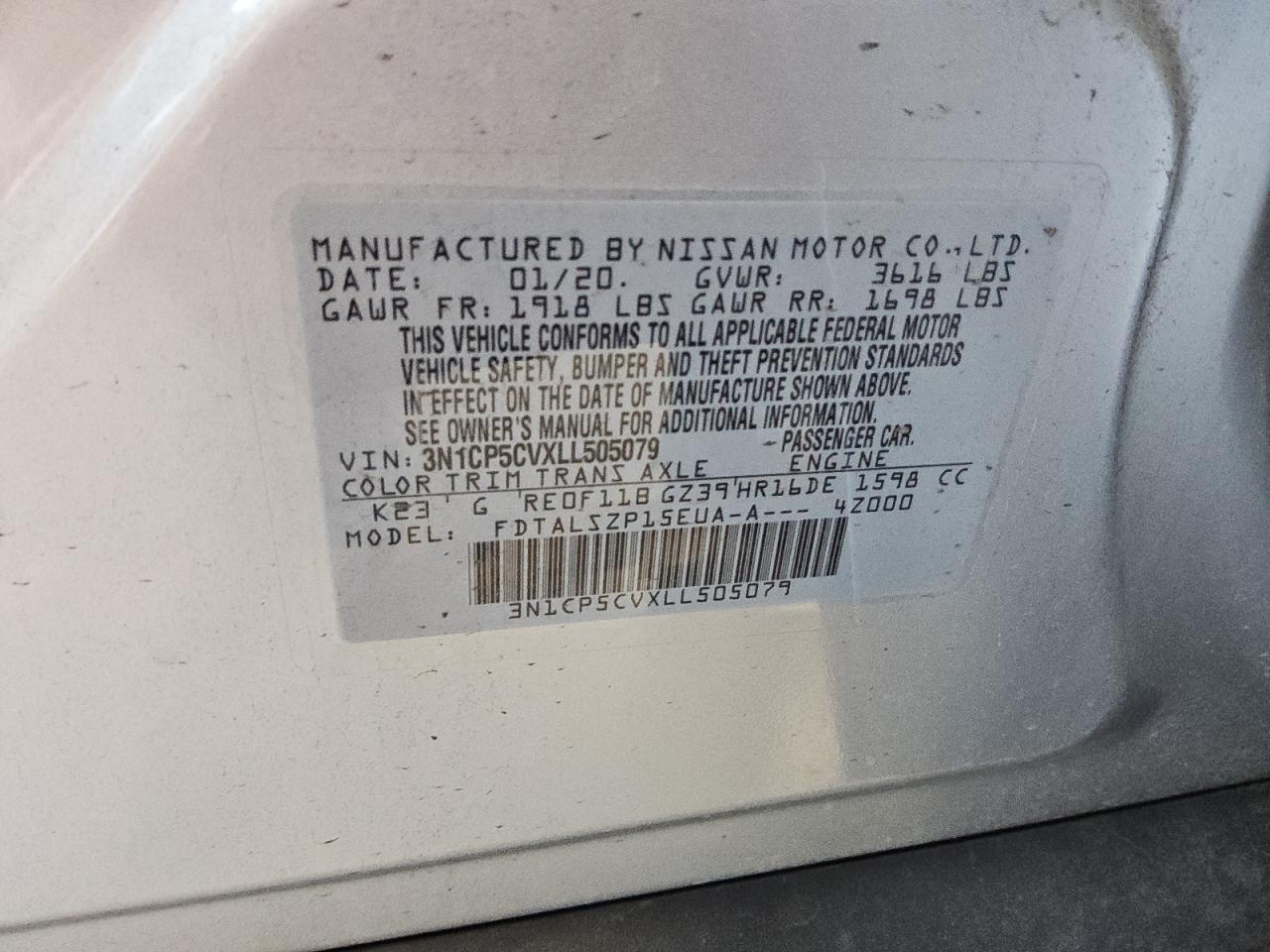 Колір СірийЦиліндри 4VIN 3N1CP5CVXLL505079Стан Заводиться та їде (перевірено)Ушкодження ЗадняДата аукціону 2025-11-03
