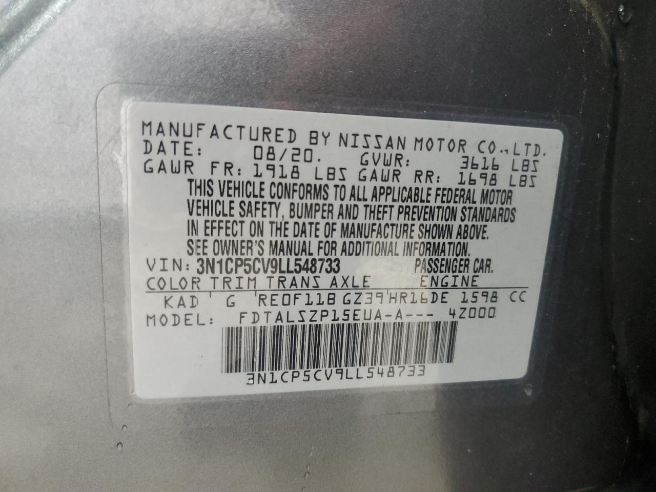 Колір СірийЦиліндри 4VIN 3N1CP5CV9LL548733Стан Заводиться та їде (перевірено)Ушкодження Механічні пошкодженняДата аукціону 2025-11-03
