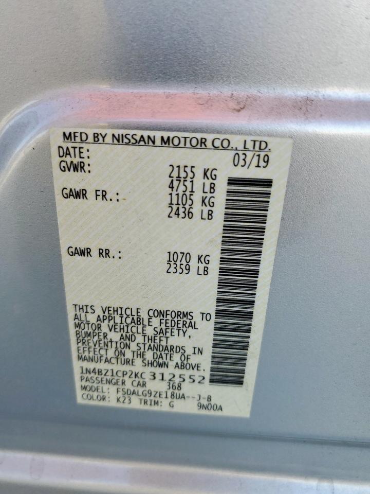 NISSAN LEAF U 2019 р.в., (1N4BZ1CP2KC312552) з США