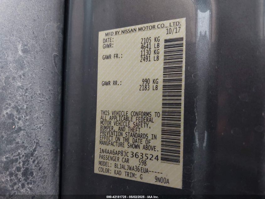 2018 NISSAN MAXIMA 3.5 PLATINUM/3.5 S/3.5 SL/3.5 SR/SV