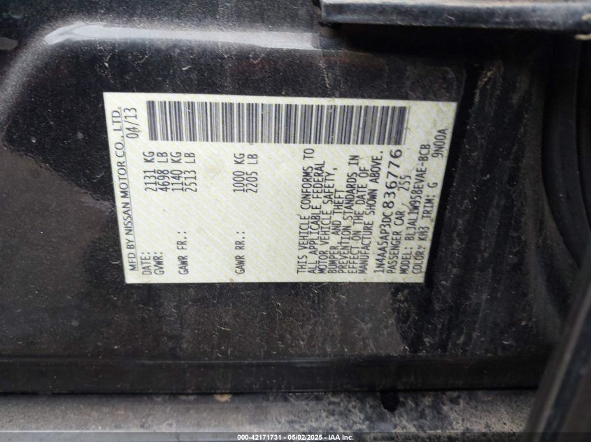 NISSAN MAXIMA 3.5 2013 р.в., Передній привід (1N4AA5AP3DC836776) з США