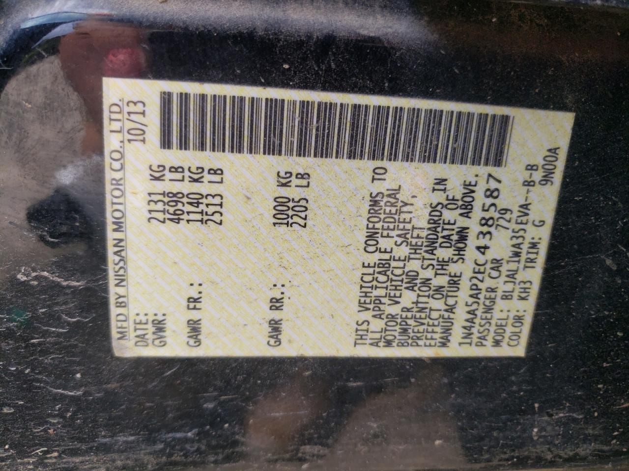 Колір ЧорнийЦиліндри 6VIN 1N4AA5AP2EC438587Стан Заводиться та їде (перевірено)Ушкодження Передня або задня