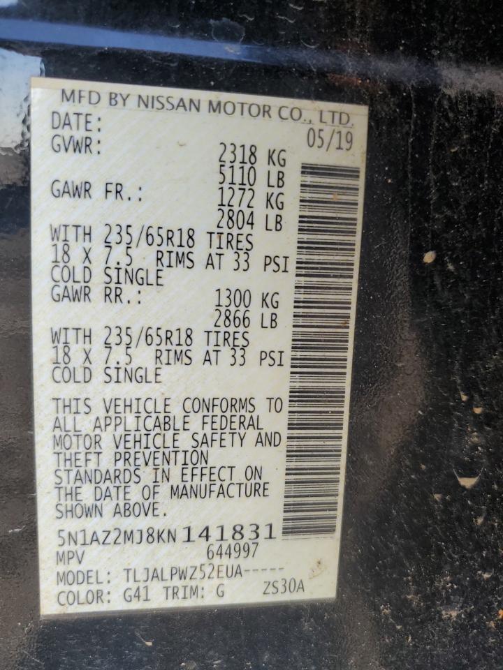 NISSAN MURANO 3.5 2019 р.в., (5N1AZ2MJ8KN141831) з США