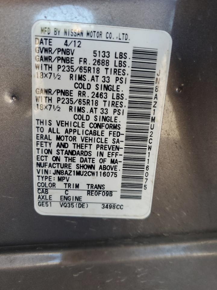 NISSAN MURANO 3.5 2012 р.в., (JN8AZ1MU2CW116075) з США