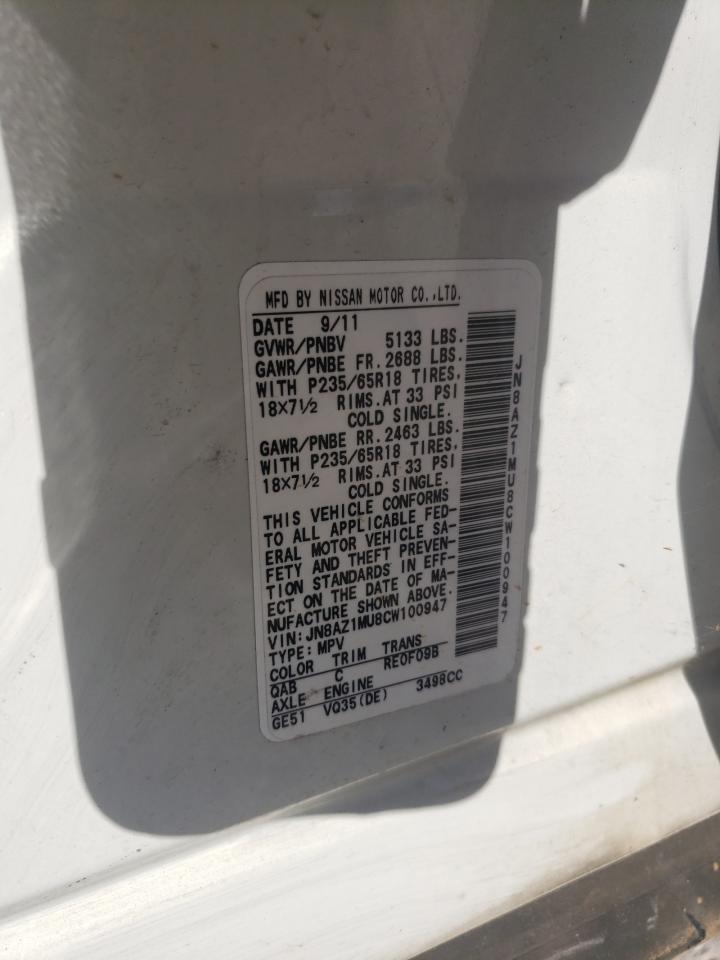 NISSAN MURANO 3.5 2012 р.в., (JN8AZ1MU8CW100947) з США