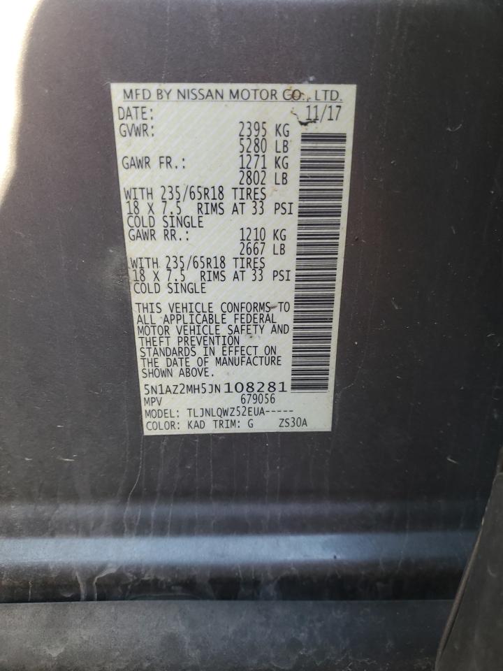 NISSAN MURANO 3.5 2018 р.в., Повний привід (5N1AZ2MH5JN108281) з США
