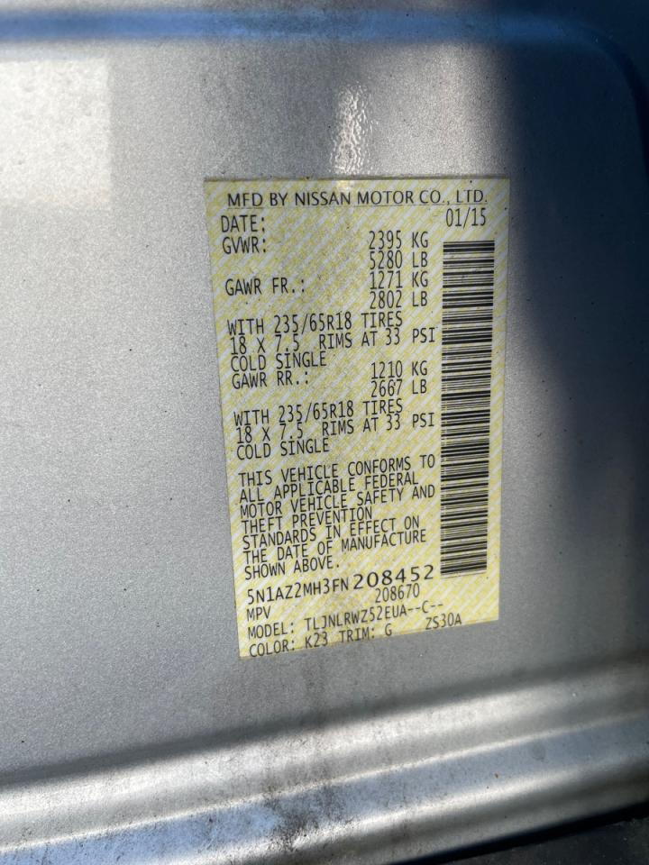 Колір СрібнийЦиліндри 6Привід Повний привідVIN 5N1AZ2MH3FN208452Стан Заводиться та їде (перевірено)Ушкодження НезначніДата аукціону 2025-11-03