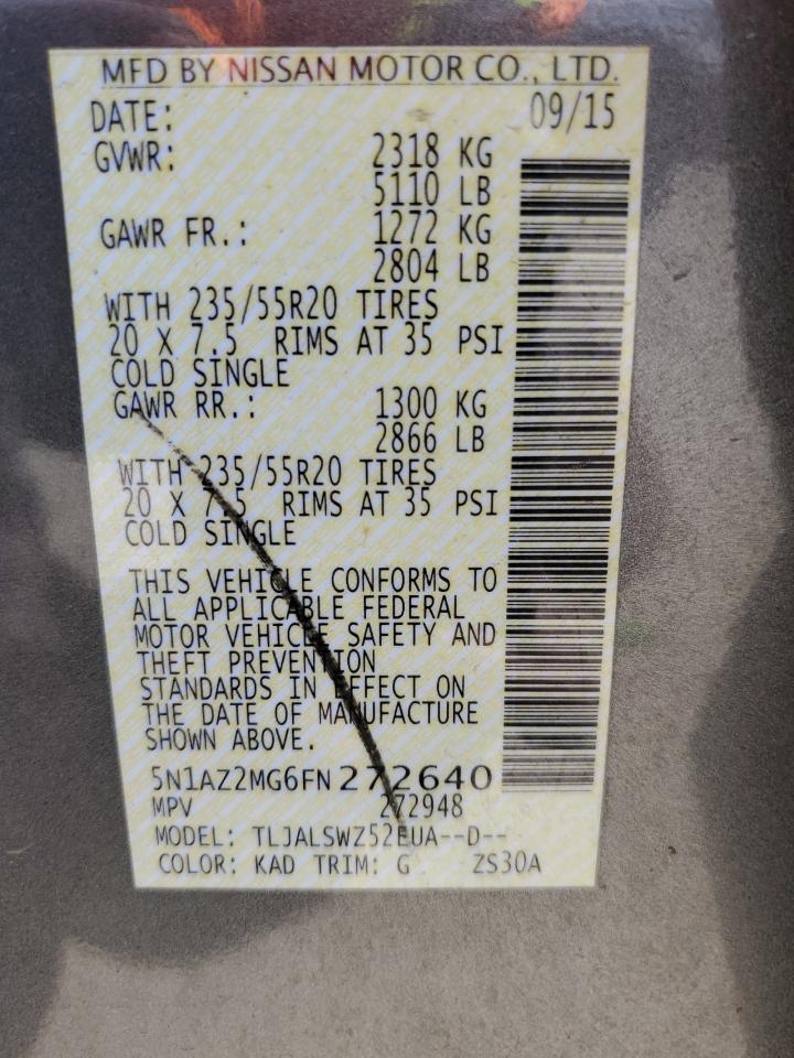 NISSAN MURANO 3.5 2015 р.в., (5N1AZ2MG6FN272640) з США