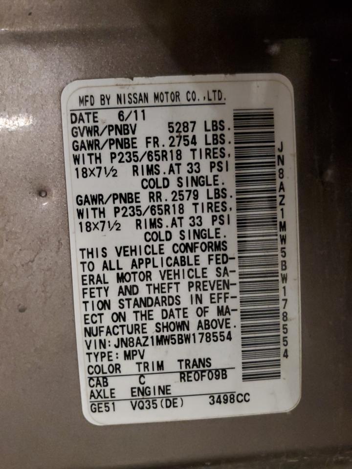 NISSAN MURANO 3.5 2011 р.в., Повний привід (JN8AZ1MW5BW178554) з США