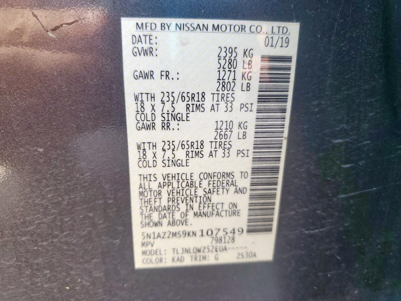 Колір СірийЦиліндри 6Привід Повний привідVIN 5N1AZ2MS9KN107549Стан Заводиться та їде (перевірено)Ушкодження Низ