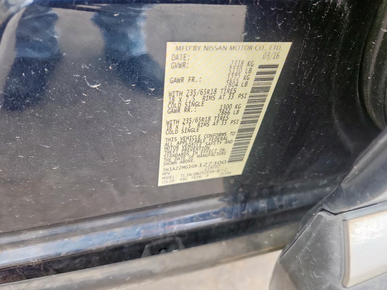 2016 NISSAN MURANO PLATINUM/S/SL/SV