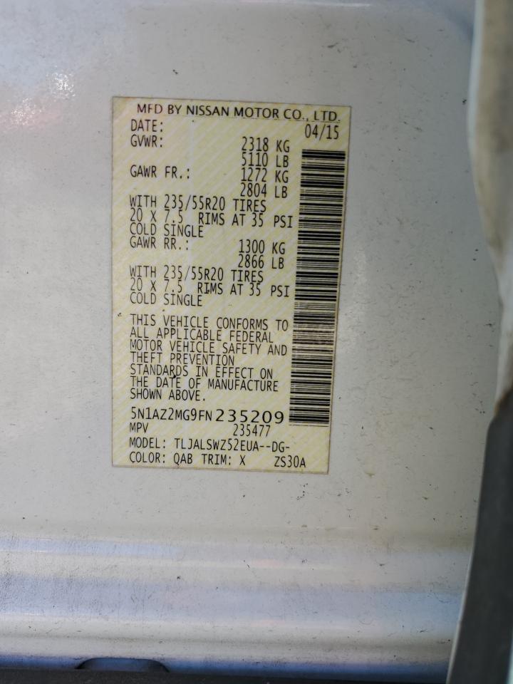 NISSAN MURANO 3.5 2015 р.в., (5N1AZ2MG9FN235209) з США