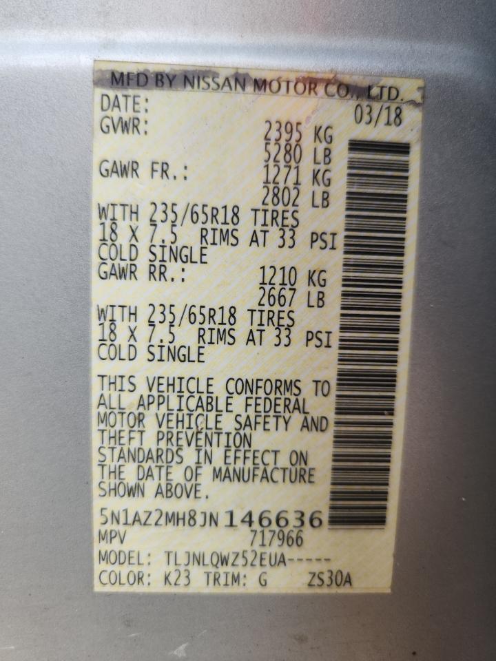 NISSAN MURANO 3.5 2018 р.в., Повний привід (5N1AZ2MH8JN146636) з США