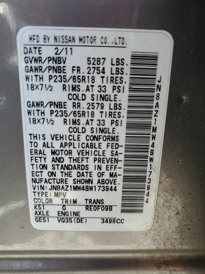 NISSAN MURANO 3.5 2011 р.в., Повний привід (JN8AZ1MW4BW173944) з США