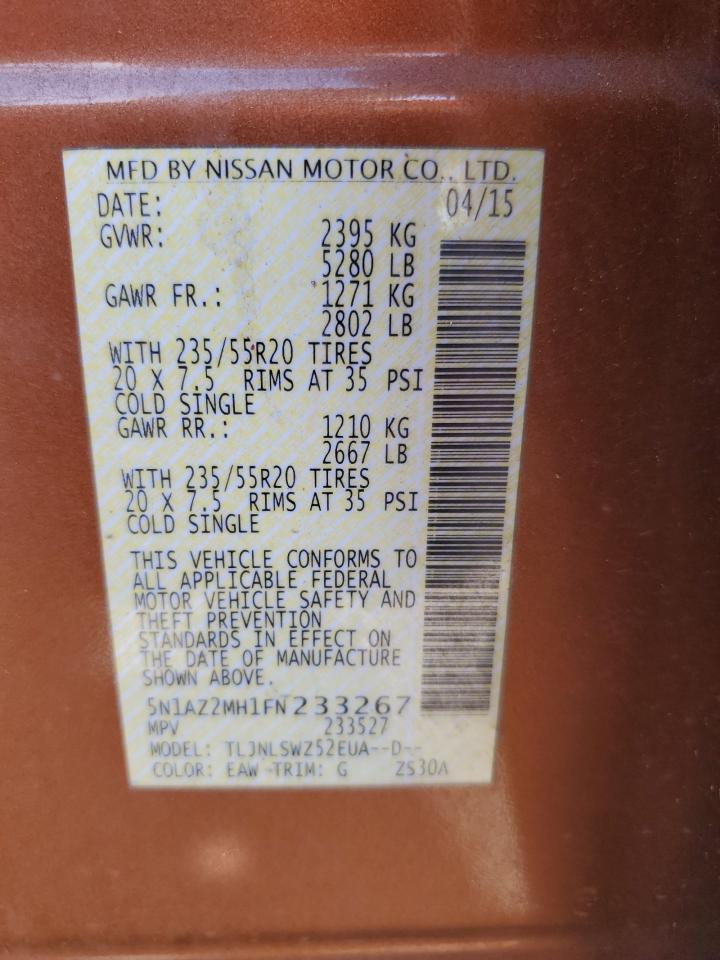 NISSAN MURANO 3.5 2015 р.в., Повний привід (5N1AZ2MH1FN233267) з США