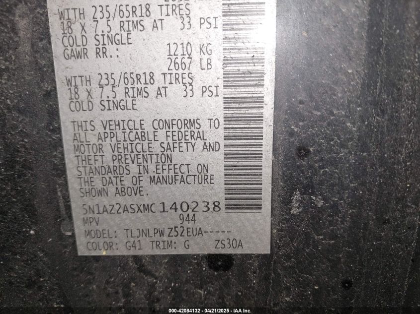 NISSAN MURANO 3.5 2021 р.в., Повний привід (5N1AZ2ASXMC140238) з США