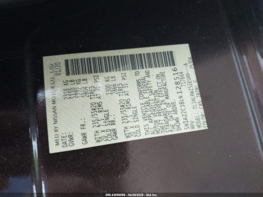 NISSAN MURANO 3.5 2020 р.в., Передній привід (5N1AZ2CJ8LN128516) з США