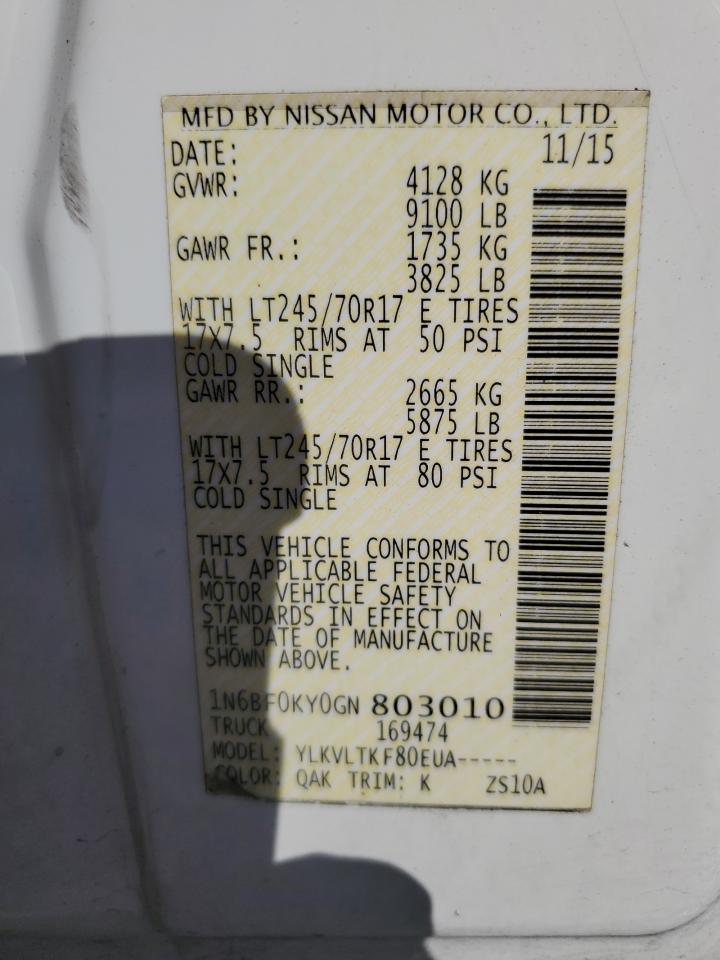 NISSAN NV1500 4.0 2016 р.в., Задній привід (1N6BF0KY0GN803010) з США