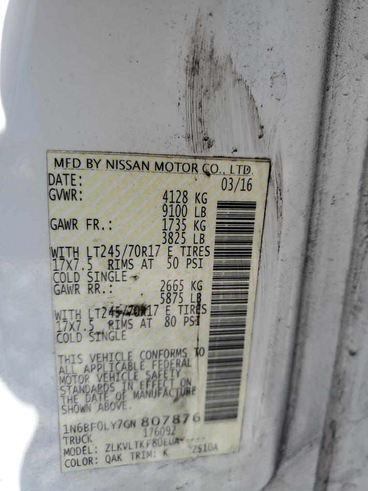 NISSAN NV2500 4.0 2016 р.в., Задній привід (1N6BF0LY7GN807876) з США