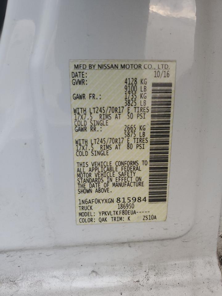 NISSAN NV2500 5.6 2016 р.в., Задній привід (1N6AF0KYXGN815984) з США