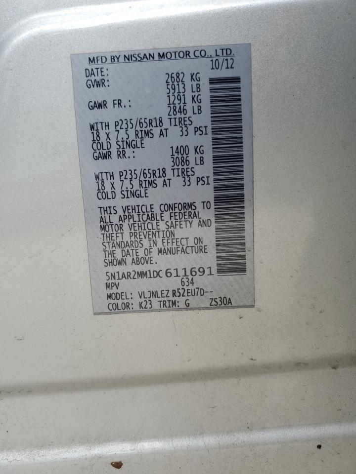 NISSAN PATHFINDER 3.5 2013 р.в., 4x4 з переднім приводом (5N1AR2MM1DC611691) з США