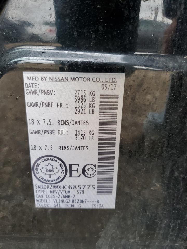 NISSAN PATHFINDER 3.5 2017 р.в., 4x4 з переднім приводом (5N1DR2MMXHC685775) з США