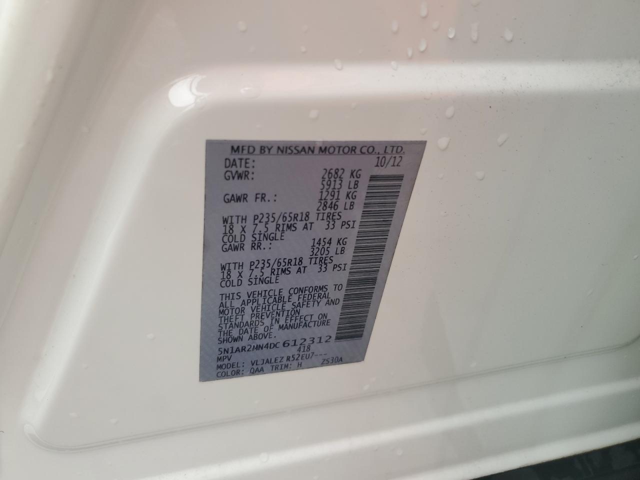 Колір БілийЦиліндри 6VIN 5N1AR2MN4DC612312Стан Заводиться та їде (перевірено)Ушкодження ЗадняДата аукціону 2025-11-07