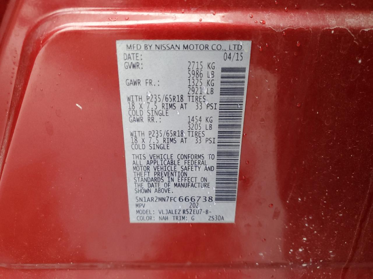 2015 NISSAN PATHFINDER PLATINUM/S/SL/SV