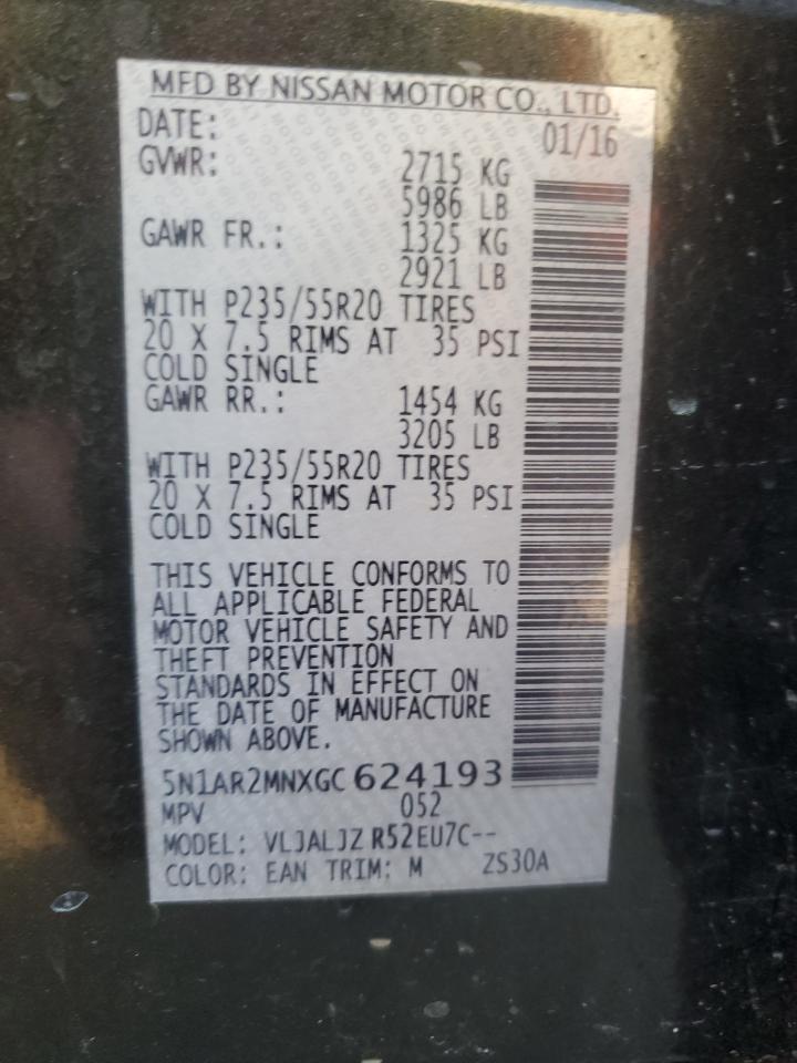 NISSAN PATHFINDER 3.5 2016 р.в., (5N1AR2MNXGC624193) з США