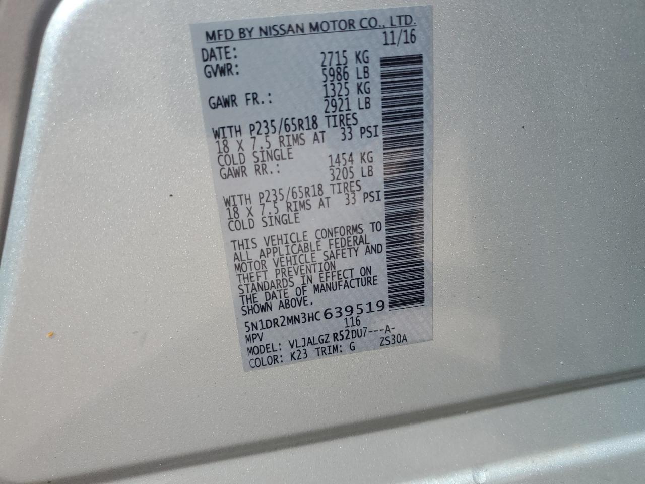 Колір СрібнийЦиліндри 6VIN 5N1DR2MN3HC639519Стан НевідомоУшкодження Вандалізм