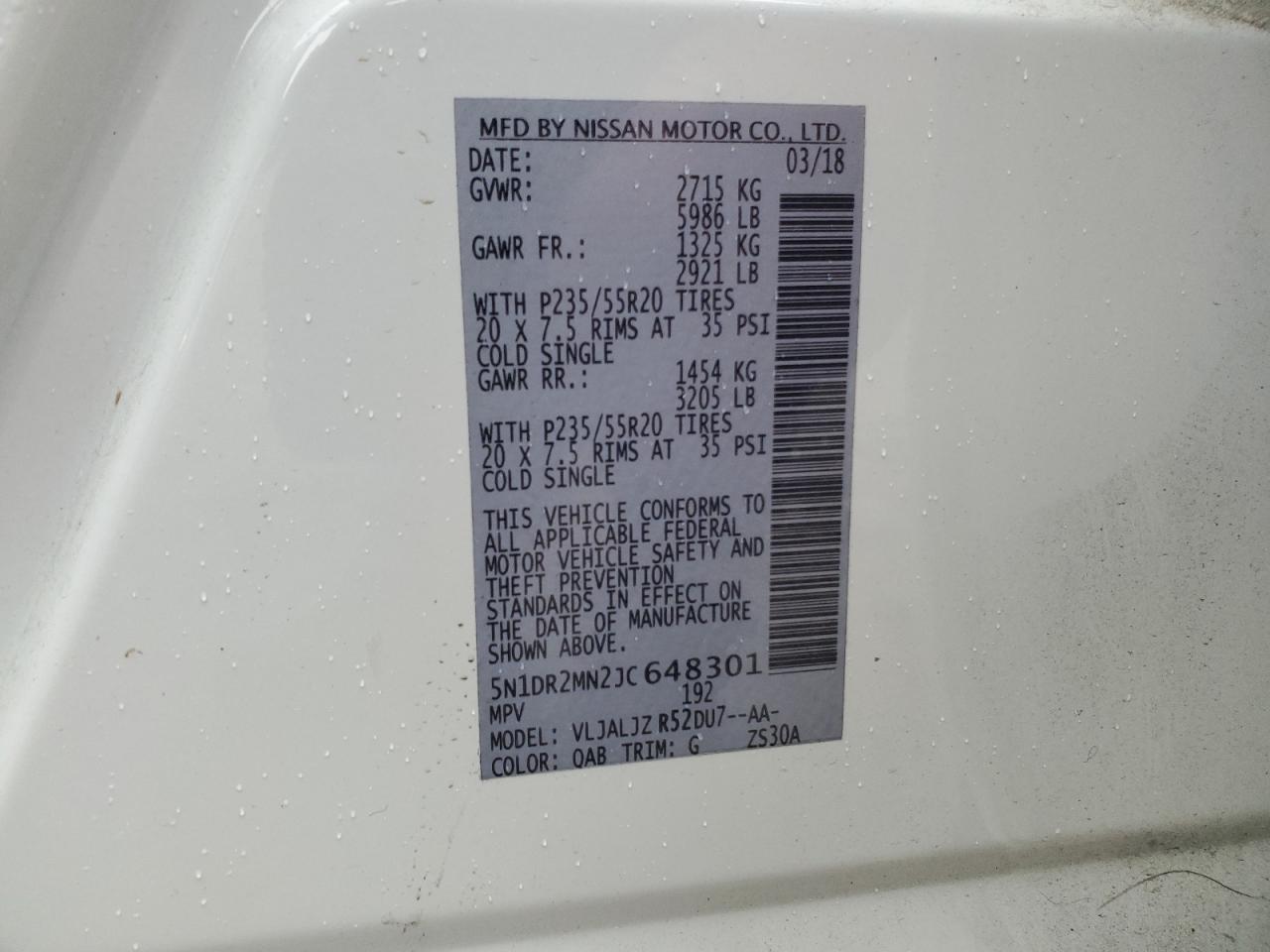Колір БілийЦиліндри 6VIN 5N1DR2MN2JC648301Стан Заводиться та їде (перевірено)Ушкодження Передня або задня