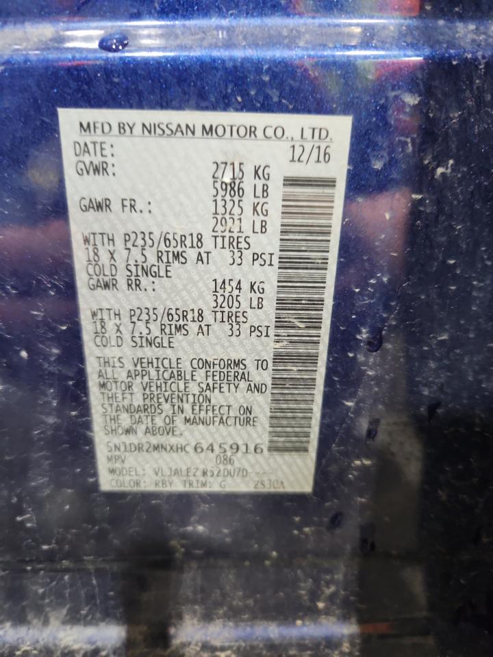 2017 NISSAN PATHFINDER PLATINUM/S/SL/SV