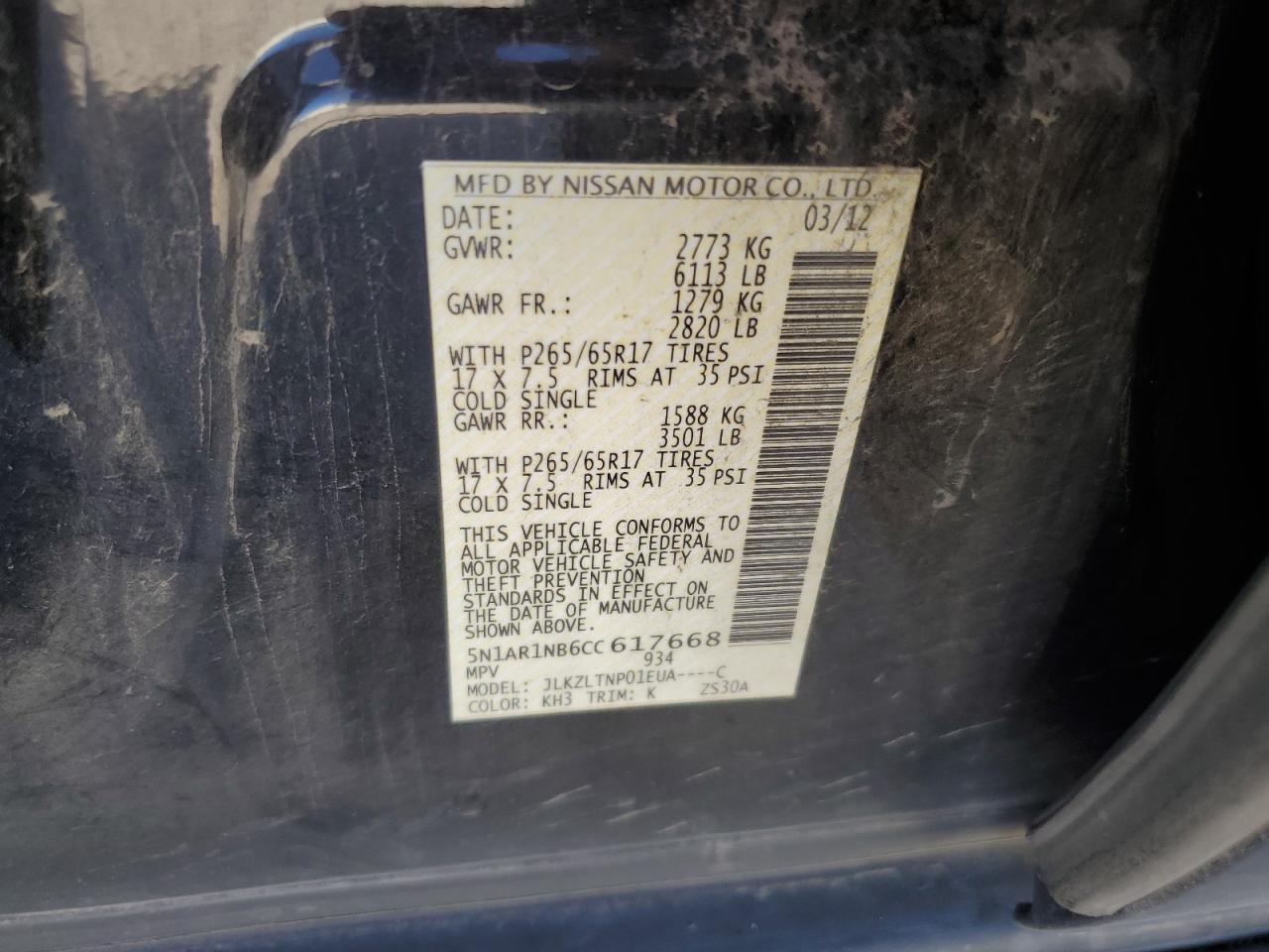NISSAN PATHFINDER 4.0 2012 р.в., 4x4 з заднім приводом (5N1AR1NB6CC617668) з США