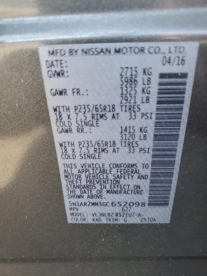 NISSAN PATHFINDER 3.5 2016 р.в., 4x4 з переднім приводом (5N1AR2MM3GC652098) з США