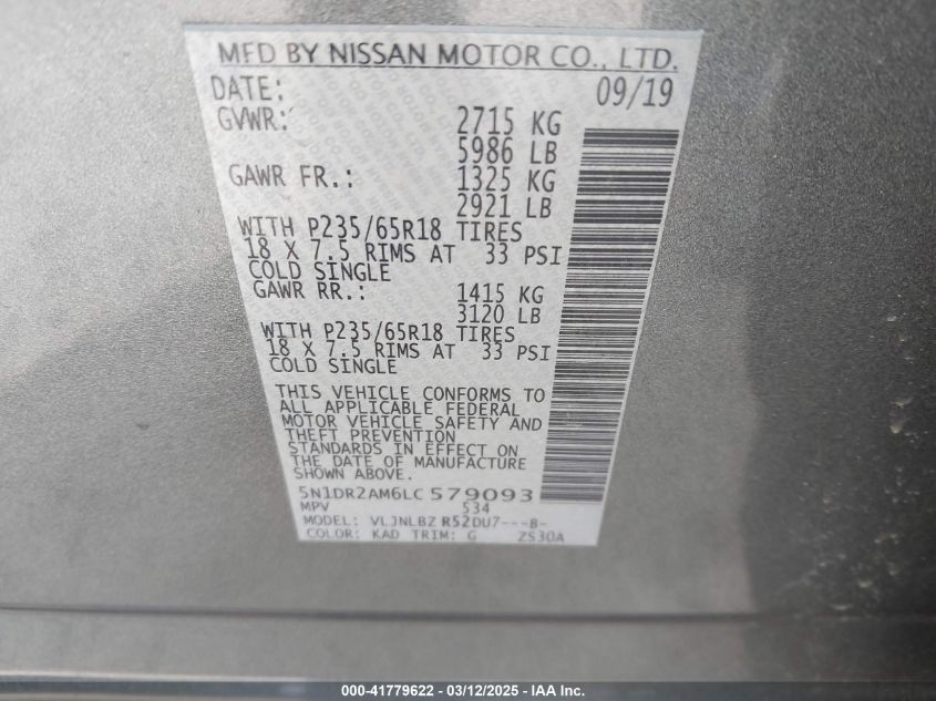 Колір СірийЦиліндри 6Привід Повний привідVIN 5N1DR2AM6LC579093Стан СтаціонарноУшкодження Передня і задня