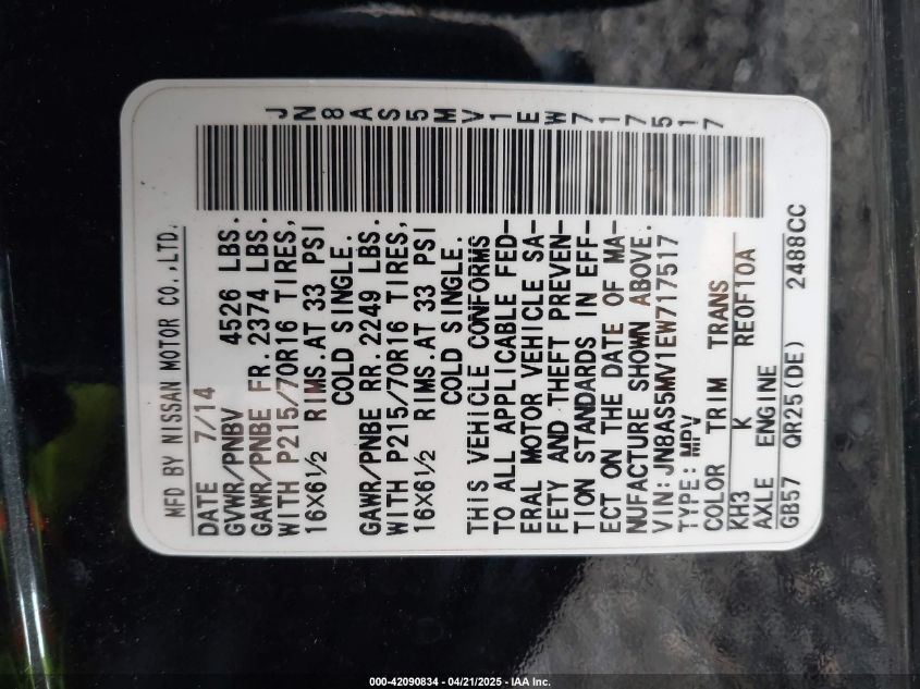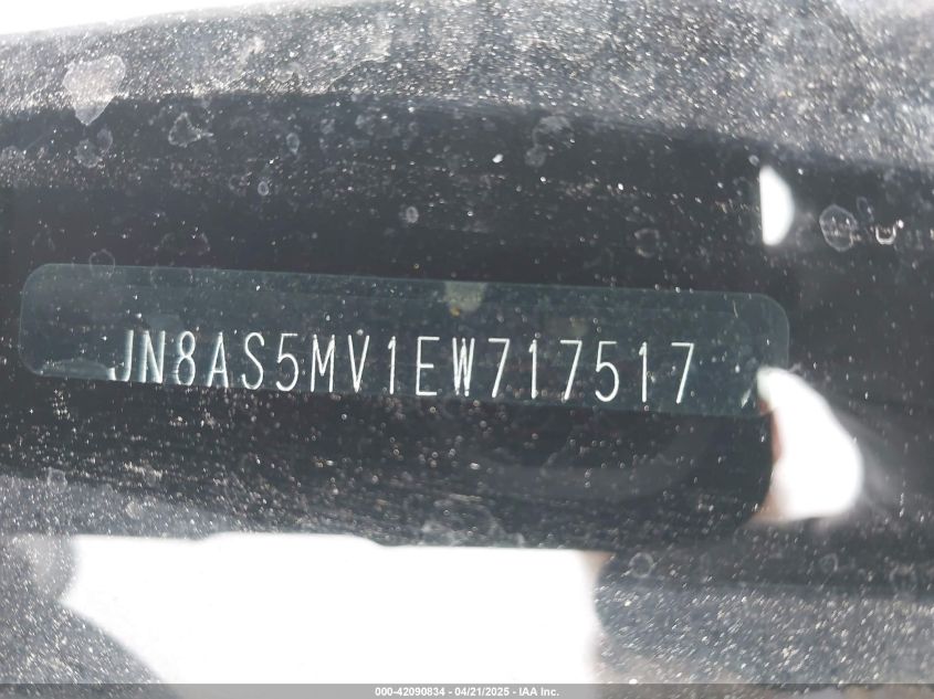 Колір ЧорнийЦиліндри 4Привід Повний привідVIN JN8AS5MV1EW717517Стан Заводиться та їде (перевірено)Ушкодження НевідомоДата аукціону 2025-11-04