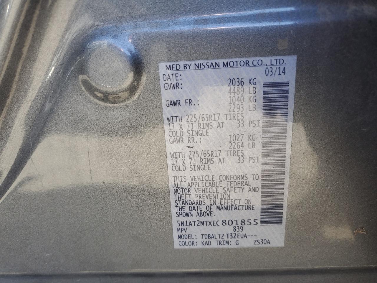 2014 NISSAN ROGUE S