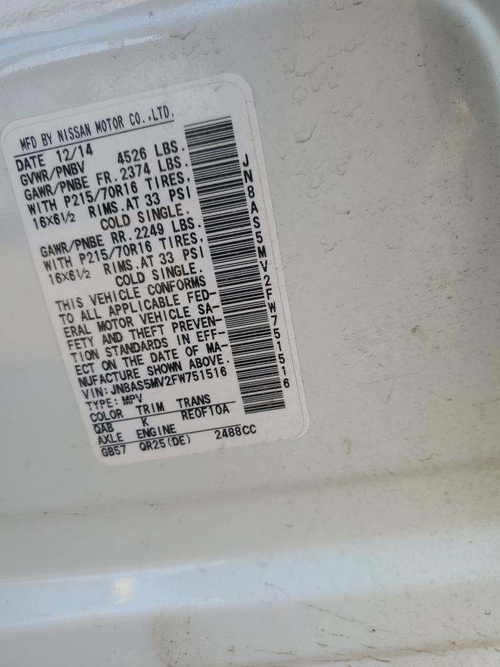 NISSAN ROGUE 2.5 2015 р.в., Повний привід (JN8AS5MV2FW751516) з США